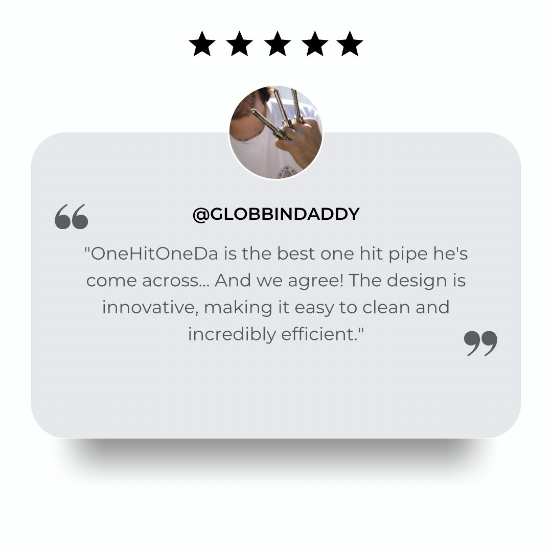 At 4 inches in length, the OneHitOneDa fits perfectly in your hand, making it easily concealable and unbreakable. It’s designed to fit into most water pipe slides as well as for hand use.